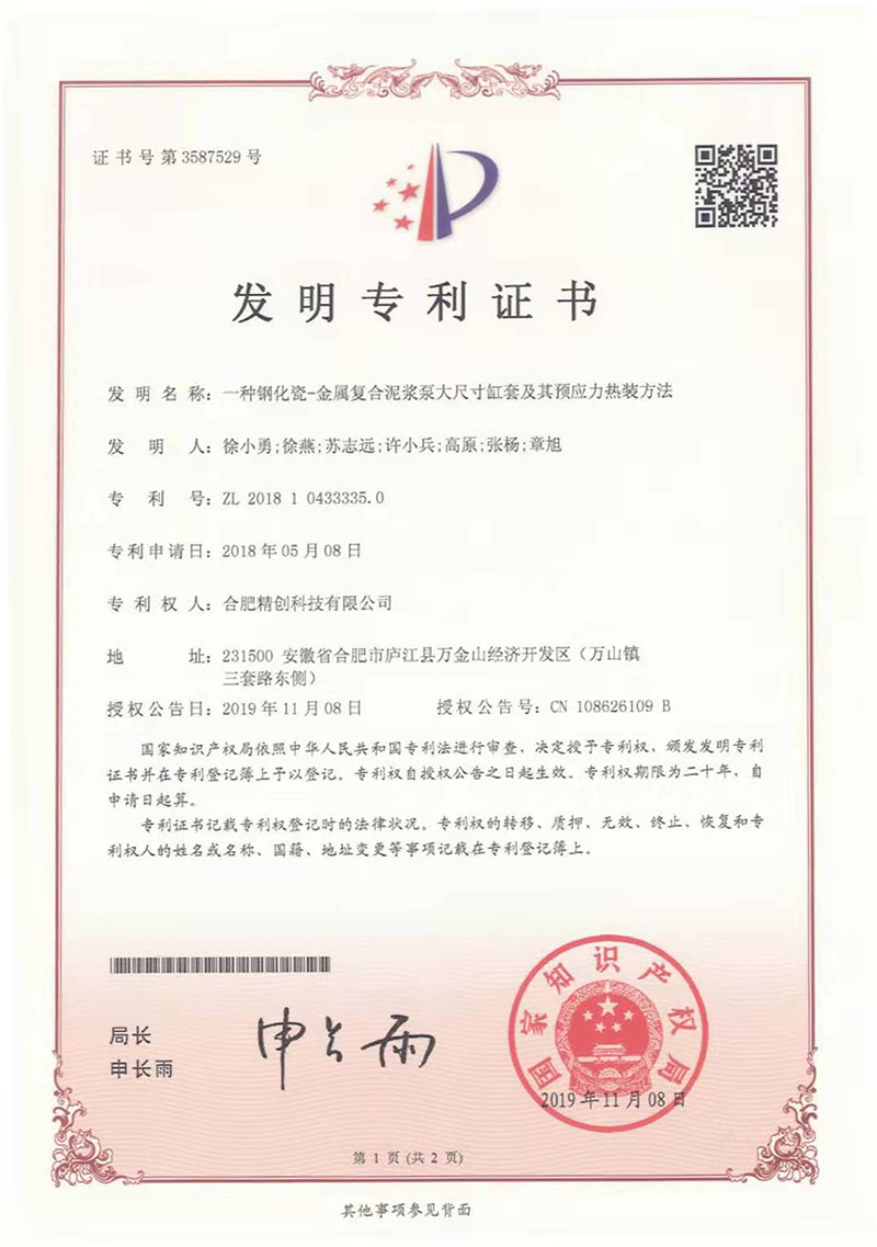 (2018發(fā)明專(zhuān)利)一種鋼化瓷-金屬?gòu)?fù)合泥漿泵大尺寸缸套及其預(yù)應(yīng)力熱裝方法